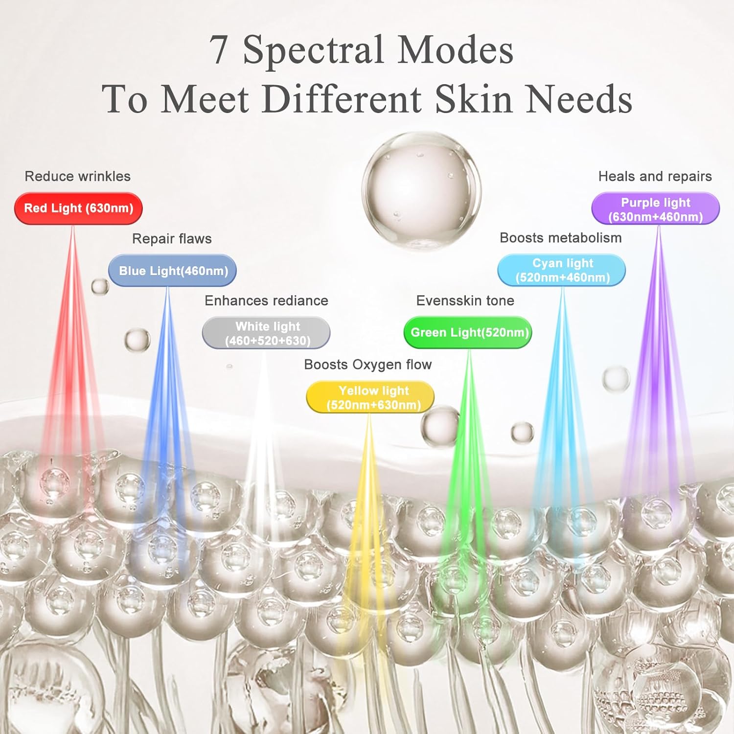 Beyond just anti-aging, this device is your all-in-one dermatologist. Choose from 7 targeted light modes and 5 intensity levels to treat specific skin concerns—from wrinkles and dullness to oil control and calming sensitive skin.